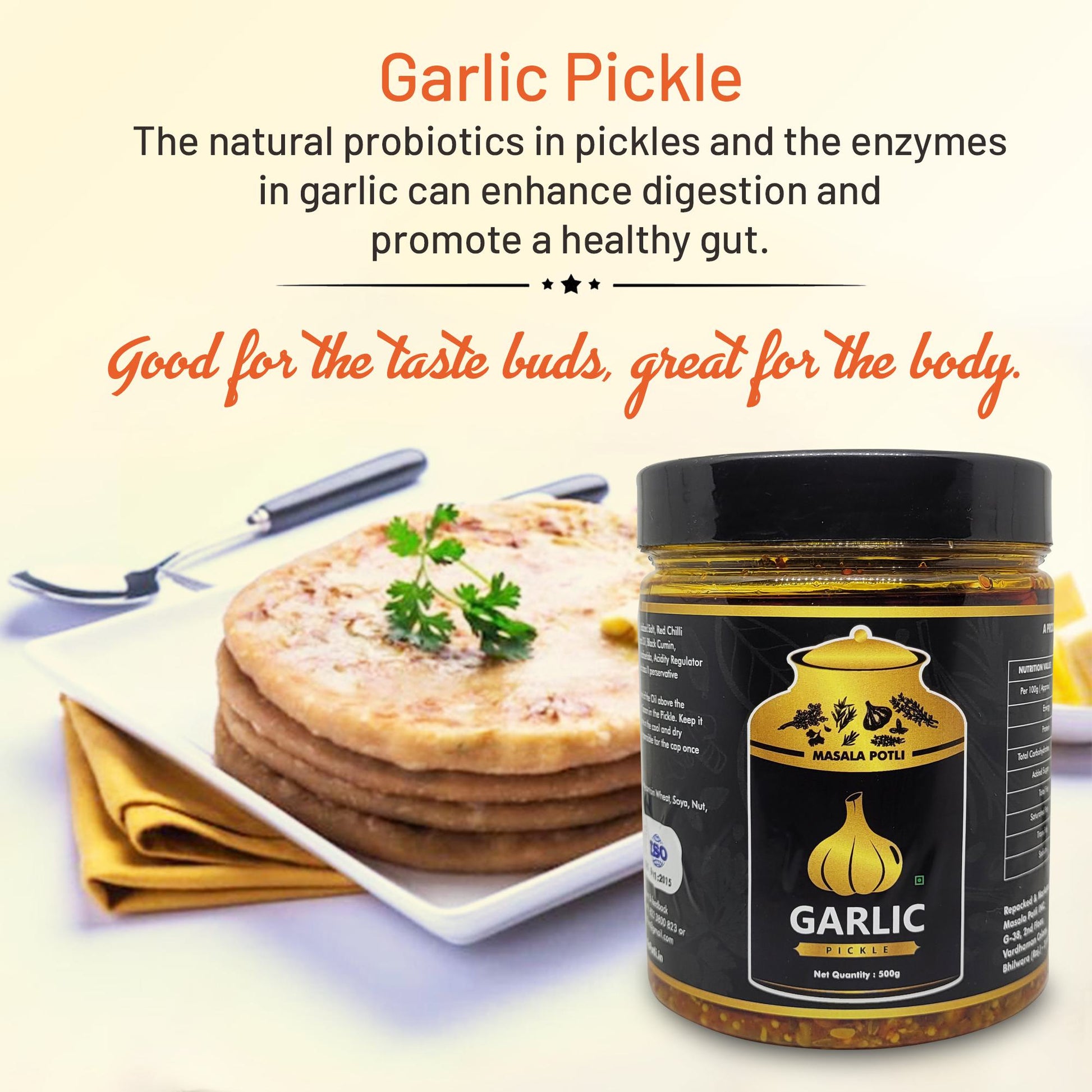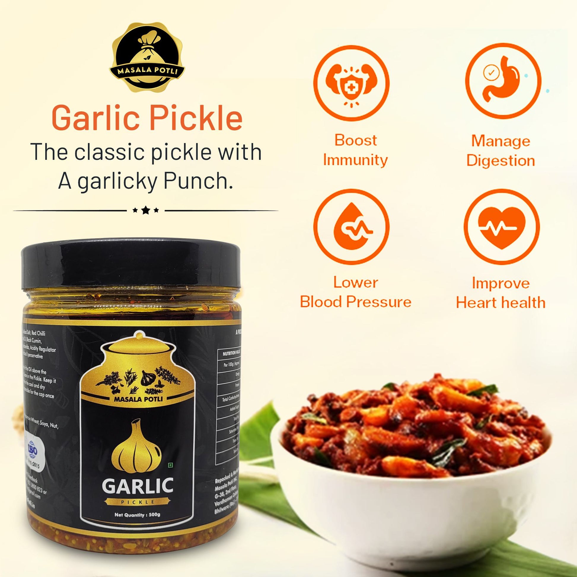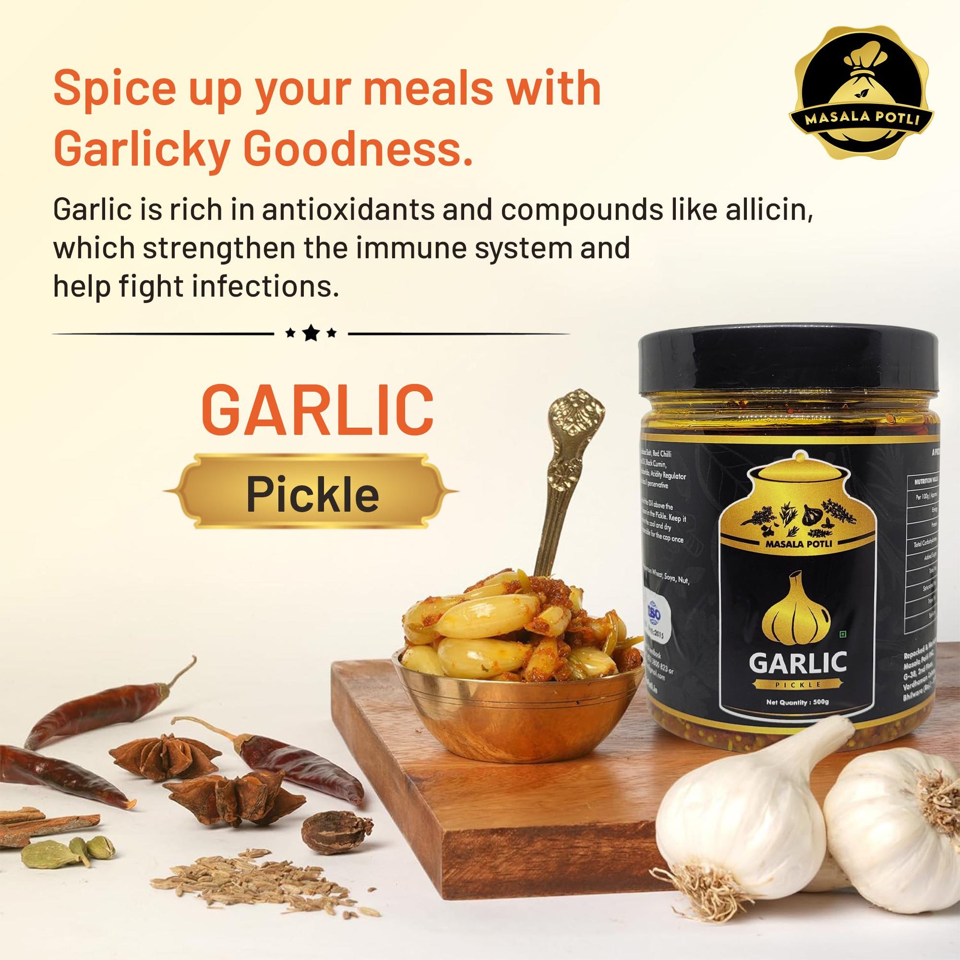 - Natural Preservation & Long Shelf Life - Prepared using traditional oil-based preservation methods with mustard oil and natural spices ensuring extended freshness, authentic taste, and rich garlic flavours for months, making it ideal for bulk buying, gifting, and maintaining premium quality in your kitchen pantry