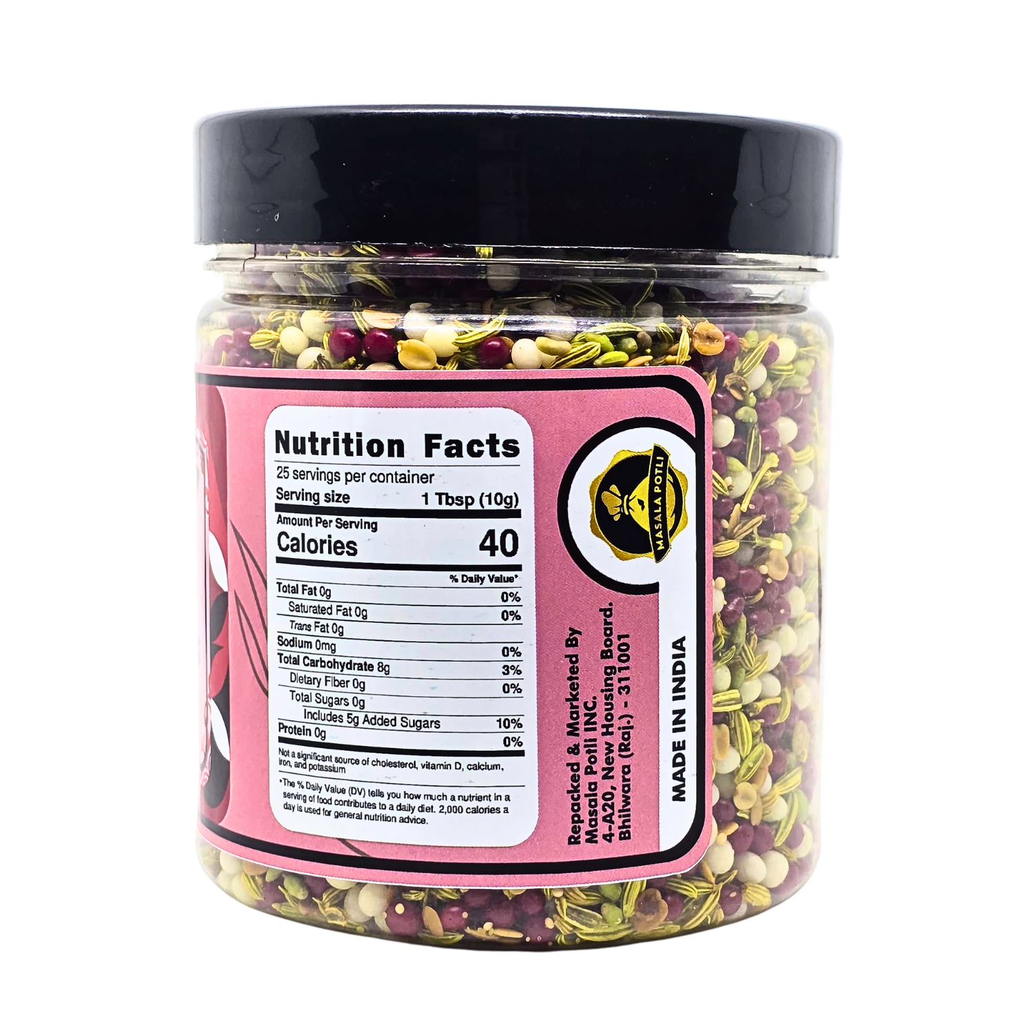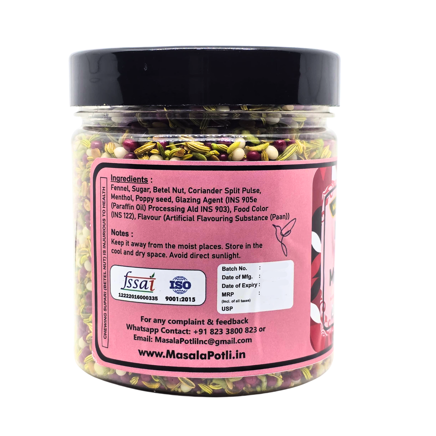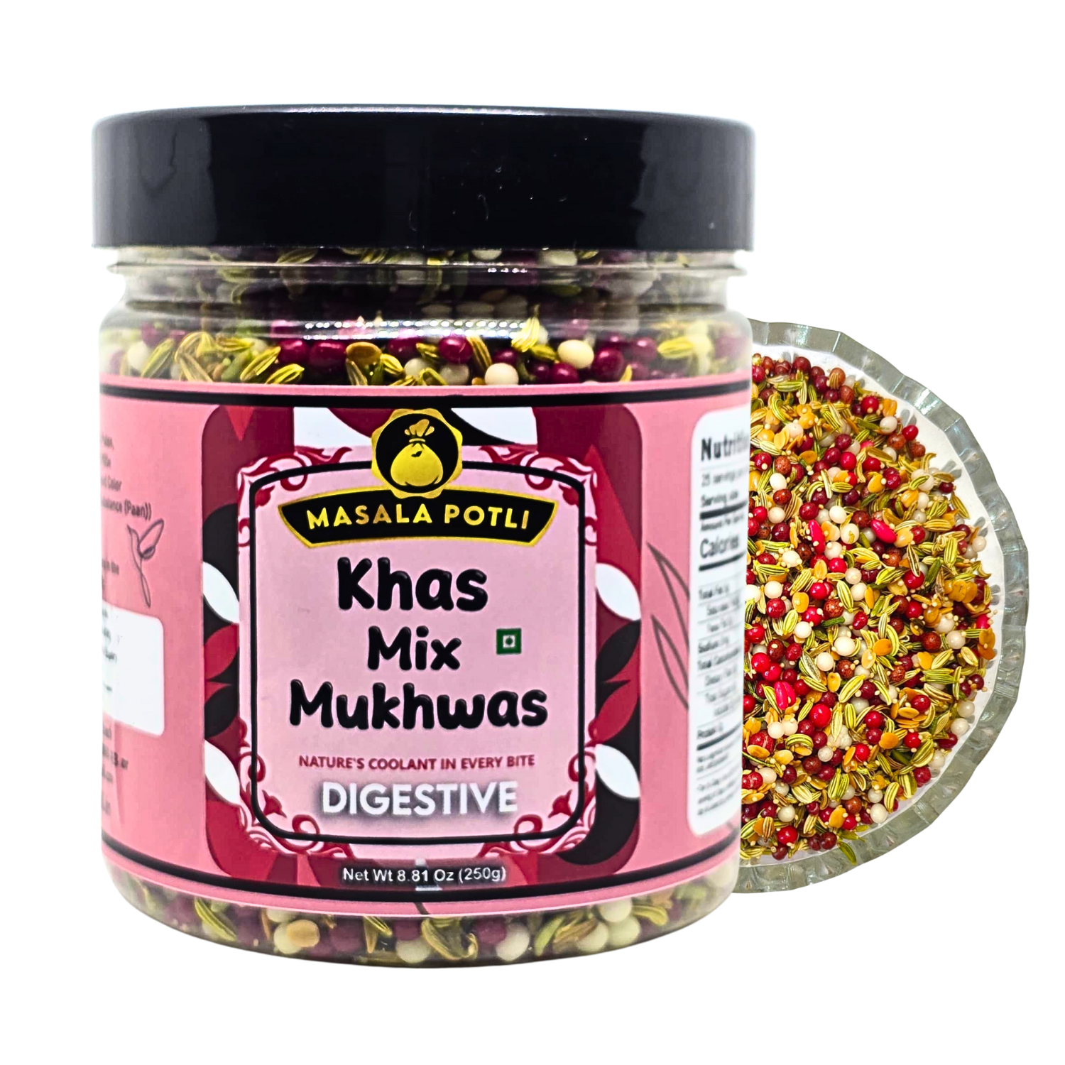 Experience authentic Indian tradition with Masala Potli Khus Mukhwas - a premium 250g blend of sweet and minty mouth freshener that doubles as a natural digestive aid. This traditional after-meal mukhwas combines aromatic spices and herbs in perfect harmony, offering refreshing breath and digestive comfort. Made with no artificial colors, this vegetarian-friendly mix comes in a convenient airtight PET jar to preserve freshness and flavor. Ideal for post-meal consumption, special occasions, or anytime you need instant mouth freshening. Rich in natural ingredients, this authentic Indian mukhwas delivers the perfect balance of sweetness and cooling mint sensation. Perfect for families, restaurants, and anyone who appreciates genuine Indian flavors and digestive wellness.