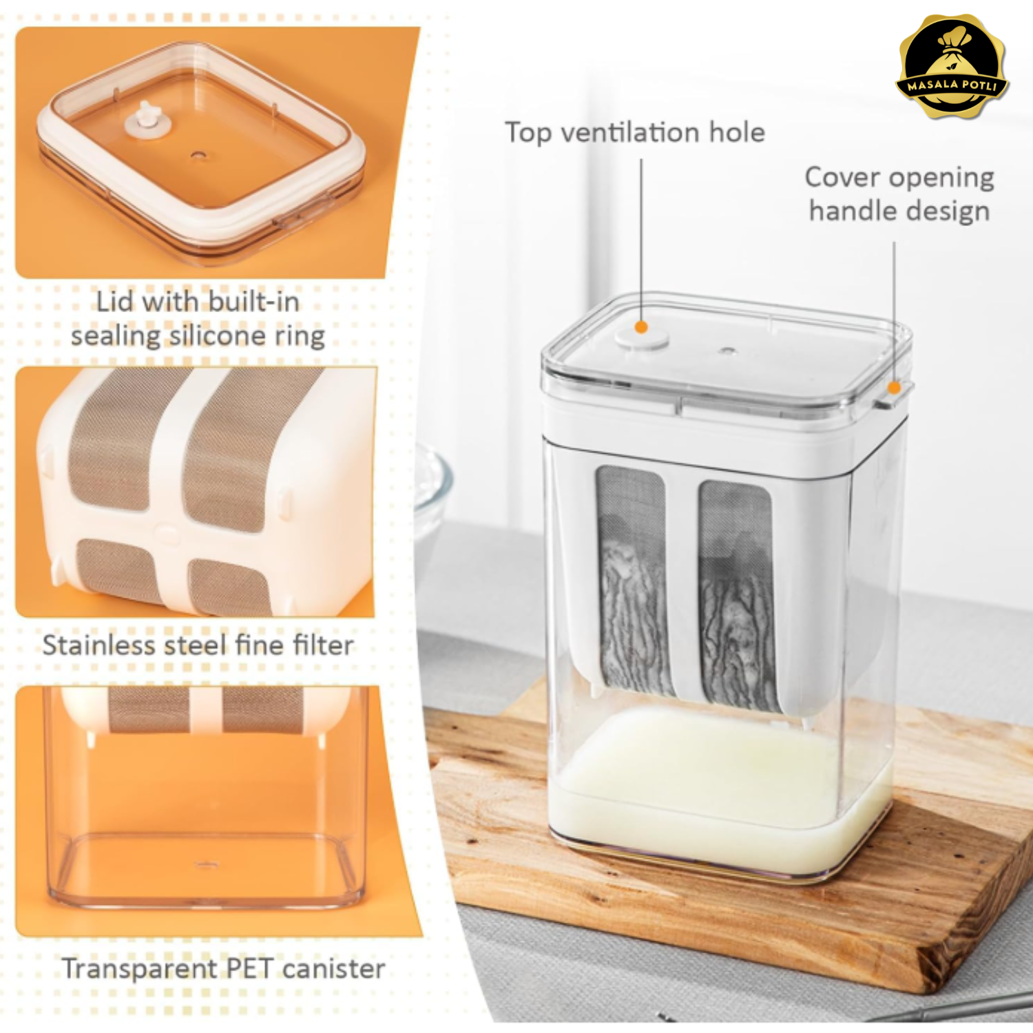 - Leak-Proof Design with Airtight Lid System - Advanced curd strainer box with built-in silicone seal, switchable ventilation, and dust-proof cover ensures hygienic yogurt preparation while preventing odors and maintaining freshness.