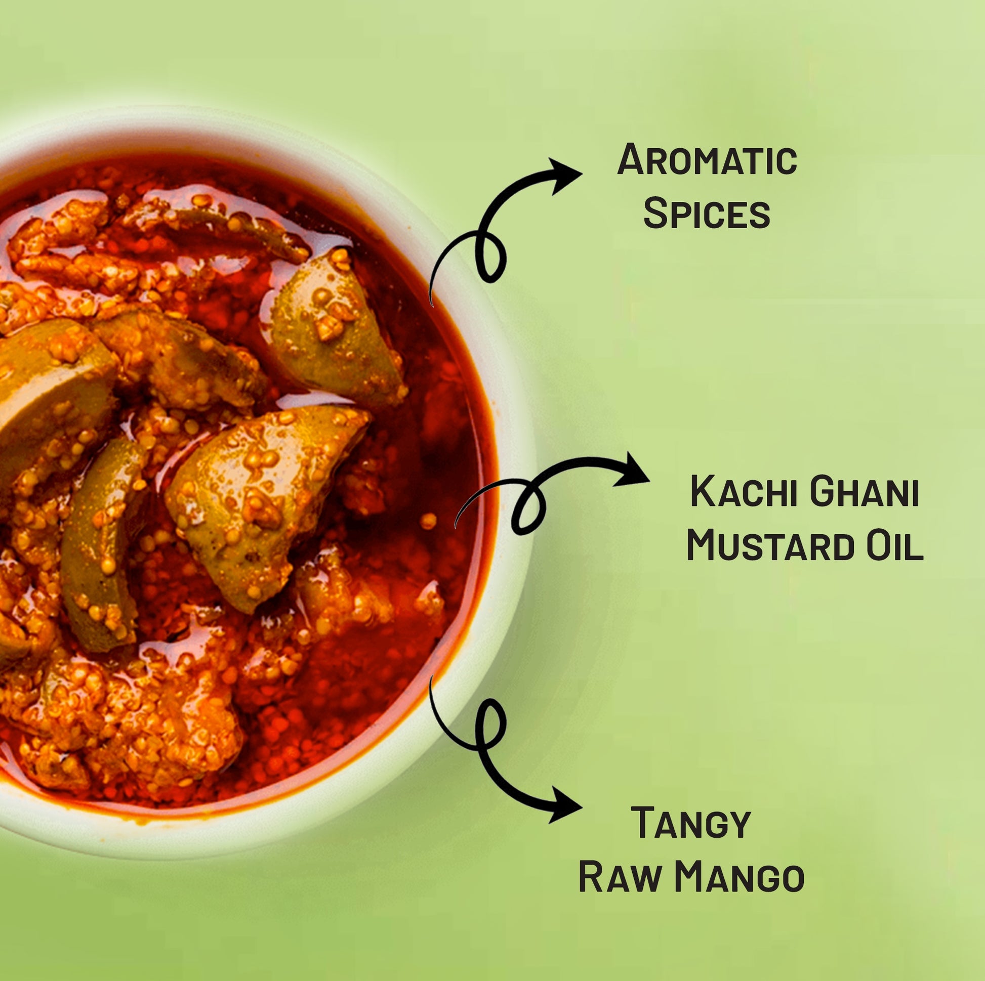 - Premium Raw Mango Pickle | Tangy & Spicy Flavour - Perfect balance of tangy and spicy flavors made from carefully selected fresh raw mangoes, delivering fiery kick and mouthwatering taste that captures the true essence of North Indian pickle traditions
