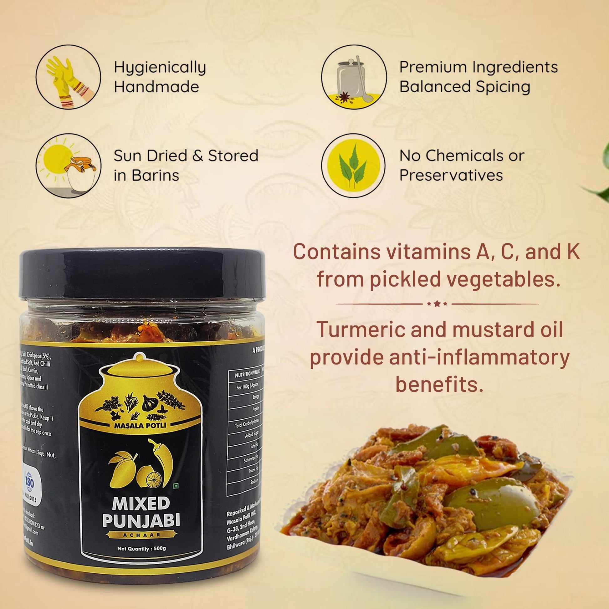 - Traditional Oil-Based Preservation & Extended Shelf Life - Prepared using age-old Punjabi preservation methods with mustard oil and natural spice blends ensuring long-lasting freshness, authentic taste, and rich mixed vegetable flavors for months, making it perfect for bulk buying, gifting, and maintaining premium quality in your kitchen