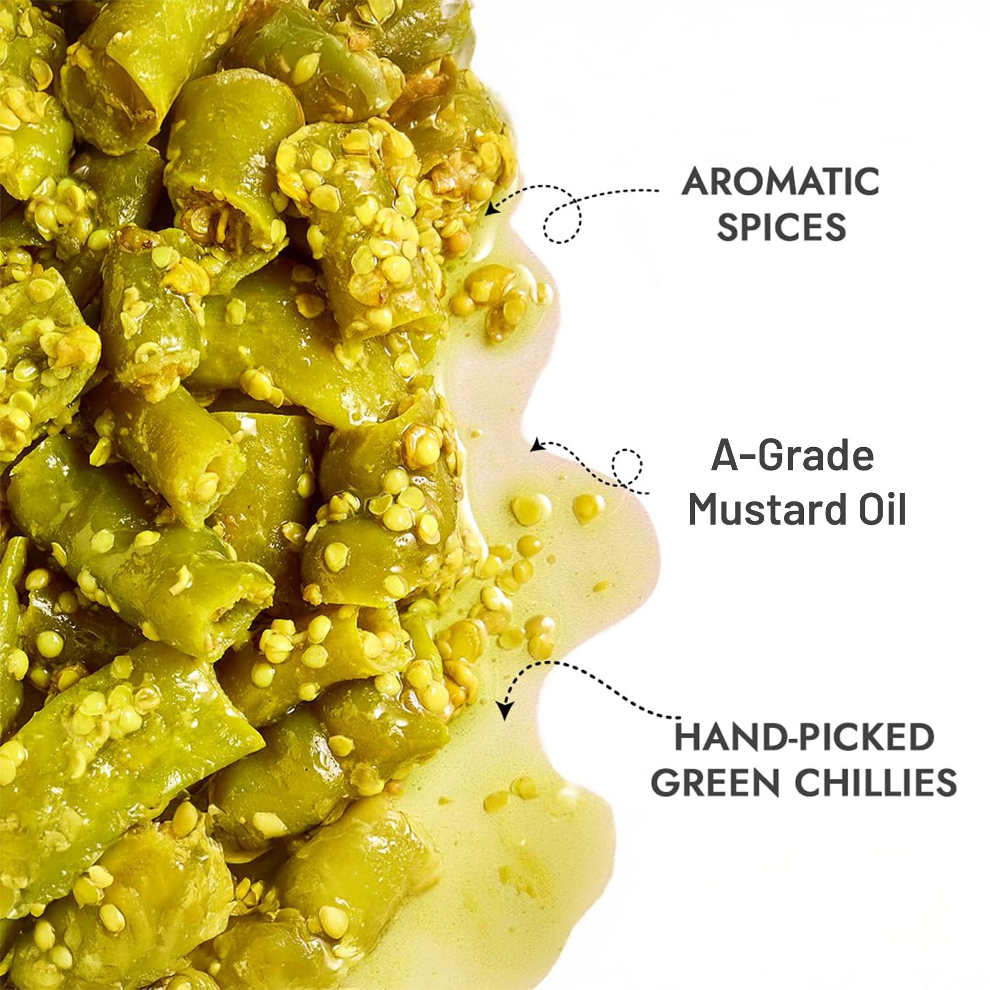 Authentic Rajasthani Hari Mirch Achar (Premium Green Chilli Pickle) - 500g