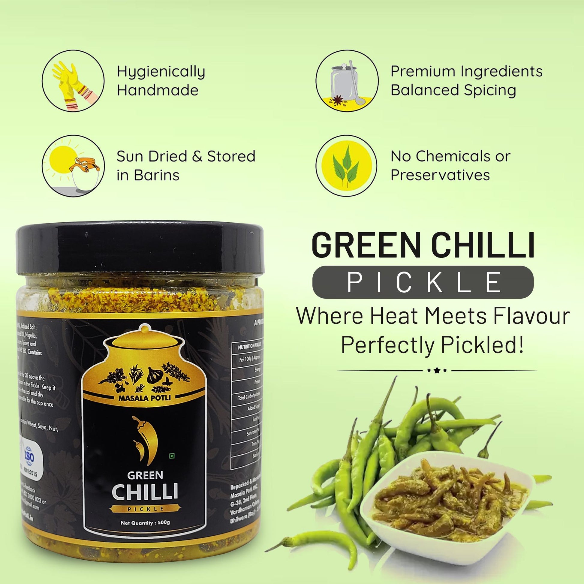 - Traditional Rajasthani Hari Mirch Achar 500g - Authentic green chilli pickle crafted with hand-picked fresh chilies, marinated in secret spice blends from Rajasthan's royal kitchens, delivering intense fiery flavor and tangy-sour taste that spice lovers crave