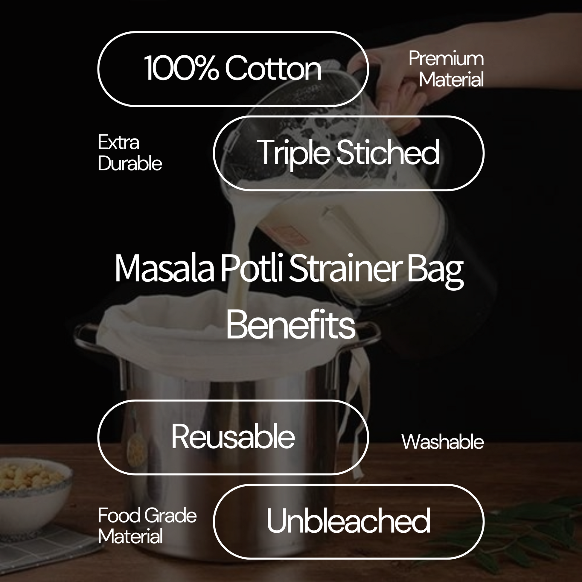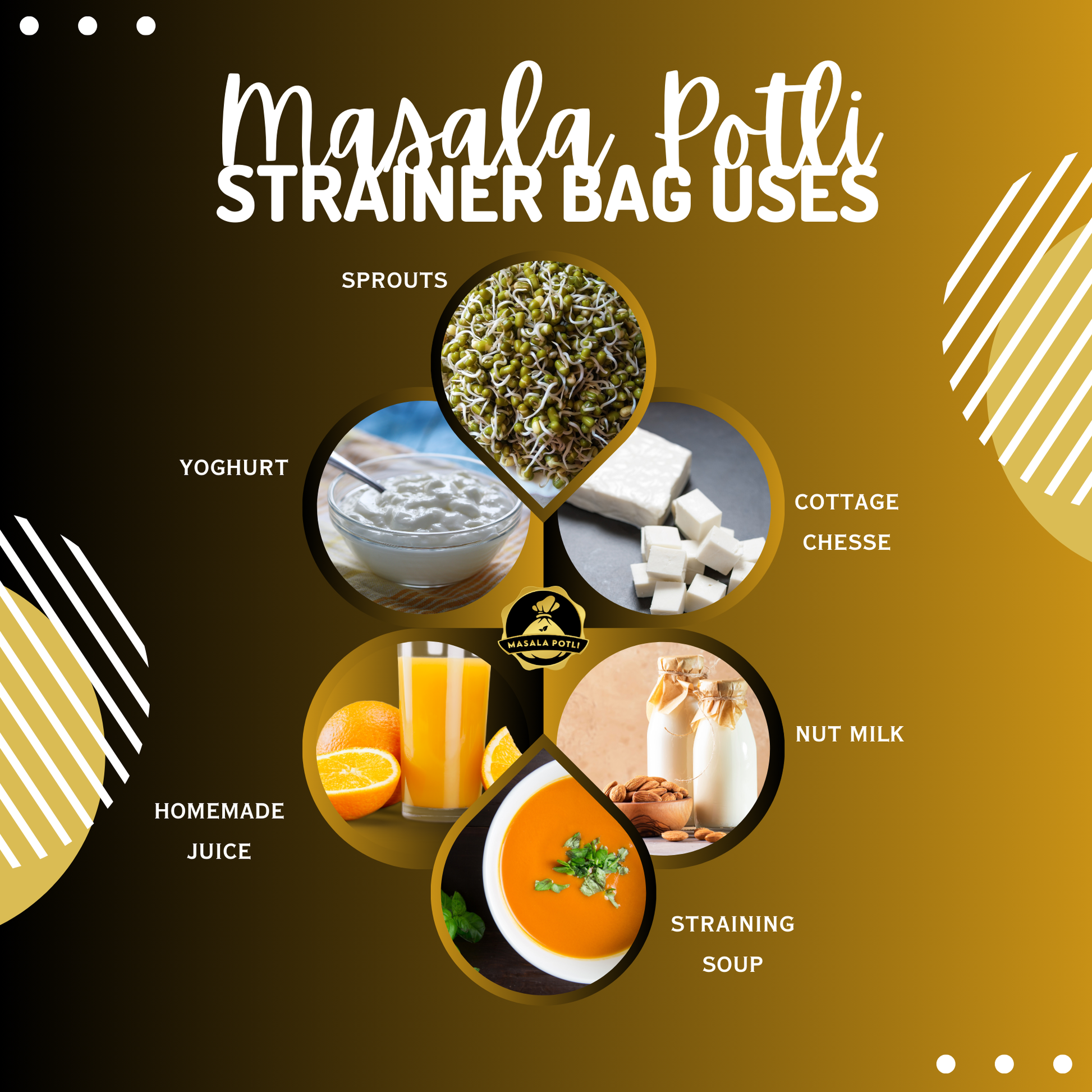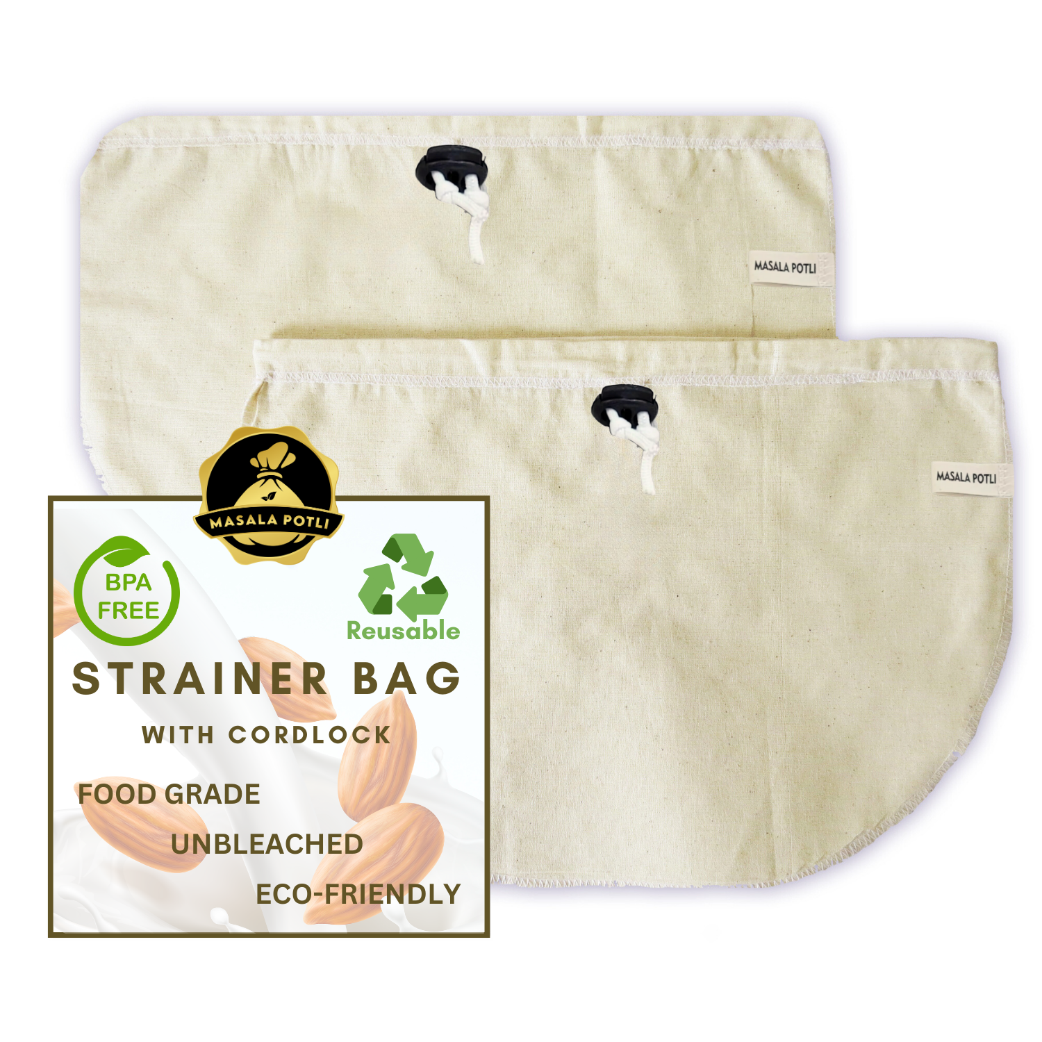 Introducing our Multipurpose Strainer Bag, a must-have tool for every kitchen! This pack of 2 strainer bags is made from high-quality unbleached muslin cloth, ensuring the best possible performance and durability.